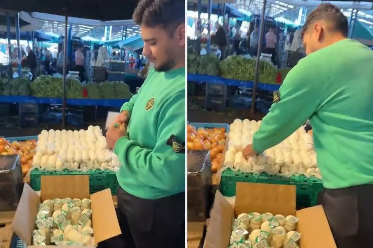 Pazarcının tüketiciyi yanıltmaya yönelik bu hareketi, izleyenlerden tepki topladı. Kısa sürede viral olan görüntünün altına, “Kime güveneceğimizi şaşırdık”, “Üzerine de ‘Taşköprü’ yazar. Gelsin haram lokmalar”, “Bu toplumsal çürüme ekonomik nedenlerle açıklanamaz” gibi yorumlar yapıldı.