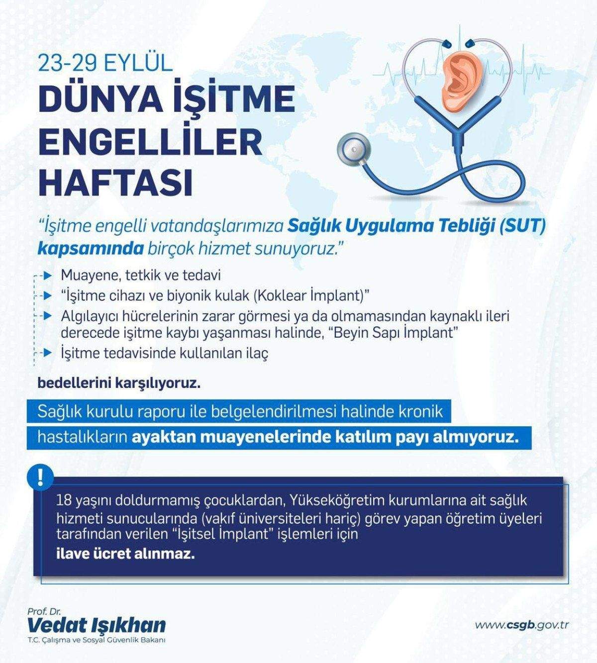 23-29 Eylül Dünya İşitme Engelliler Haftası nereniyle açıklama yapan Çalışma ve Sosyal Güvenlik Bakanı Vedat Işıkhan, şu ifadeleri kullandı: