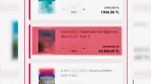 İstanbul’da bir özel okulun 5. sınıf öğrencileri için hazırladığı kırtasiye ve kitap listesi, dudak uçuklatan fiyatlarıyla gündem oldu. NTV’nin haberine göre, listede yer alan bir matematik kitabı 43 bin TL, Türkçe kitabı 4 bin TL, din kültürü kitabı 3 bin TL, resim defteri ise 1.700 TL olarak fiyatlandırıldı. Matematik kitabının fiyatı ise “48 bin TL’den indirimli 43 bin TL” olarak listede yer aldı.