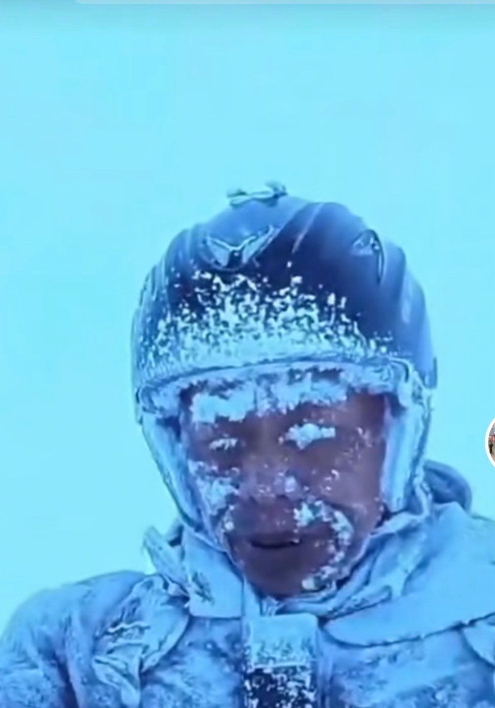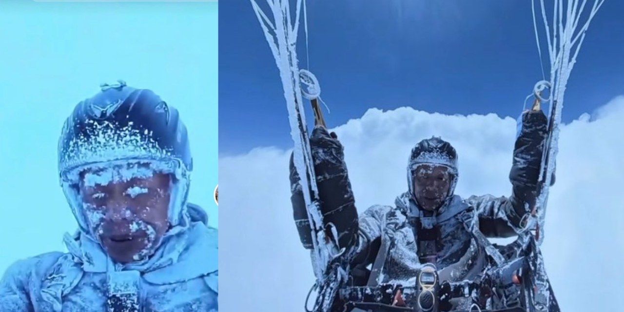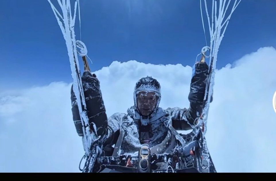 Soğuk hava ve buzla kaplanan koruyucu ekipmanına rağmen paraşütüne sıkıca tutundu ve telsizle iletişimini sürdürdü. O anları kaydeden Liu, sosyal medyada büyük yankı uyandırdı. Görüntülerde, saçları ve sakalları buzla kaplı halde, gökyüzünde süzüldüğü görüldü.