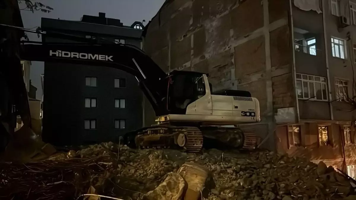 Hürriyet Mahallesi Neşe Sokak’taki 6 katlı bina iş makineleri yardımıyla yıkıldı. Yıkımı yapılan binaya bitişik 5 katlı apartmanın giriş katındaki dairenin yan duvarının olmadığı anlaşıldı.