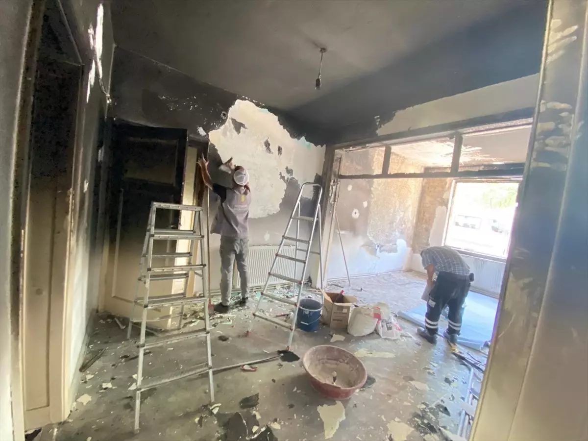 Alaylar 1 Mahallesinde yangında zarar gören ev, belediye ekiplerinin desteğiyle yenilendi.