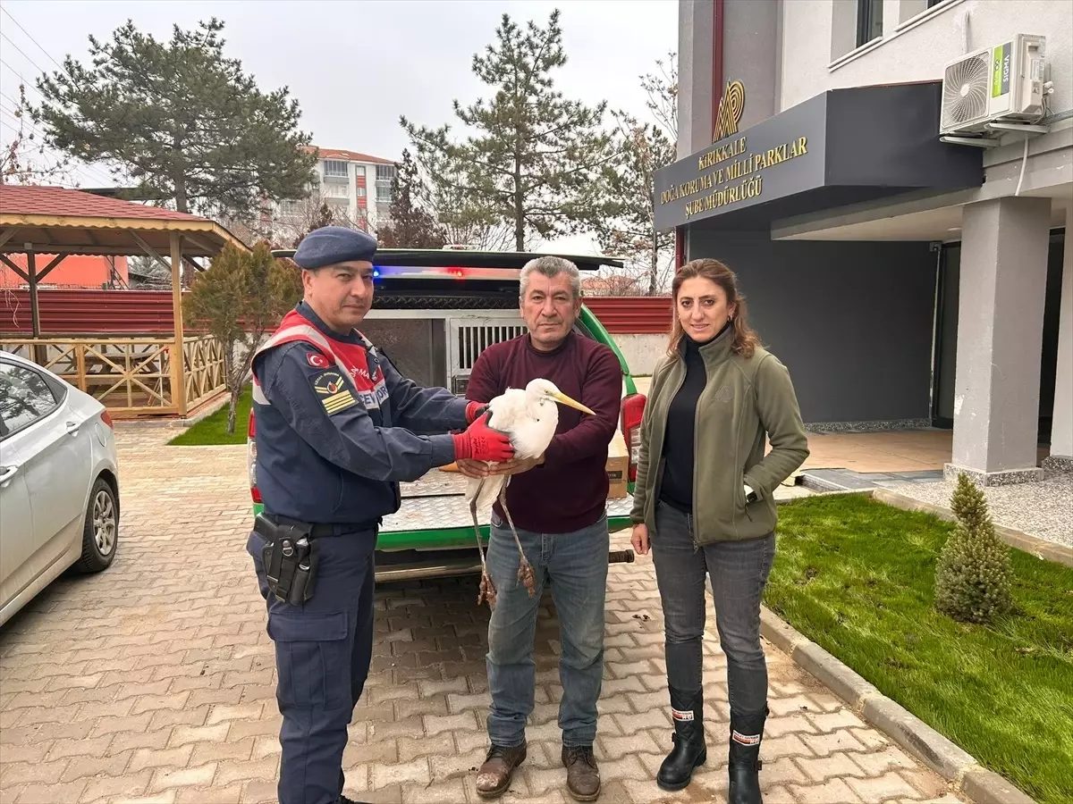 Kırıkkale’de jandarma ekiplerince bulunan yaralı büyük ak balıkçıl kuşu tedavi altına alındı.