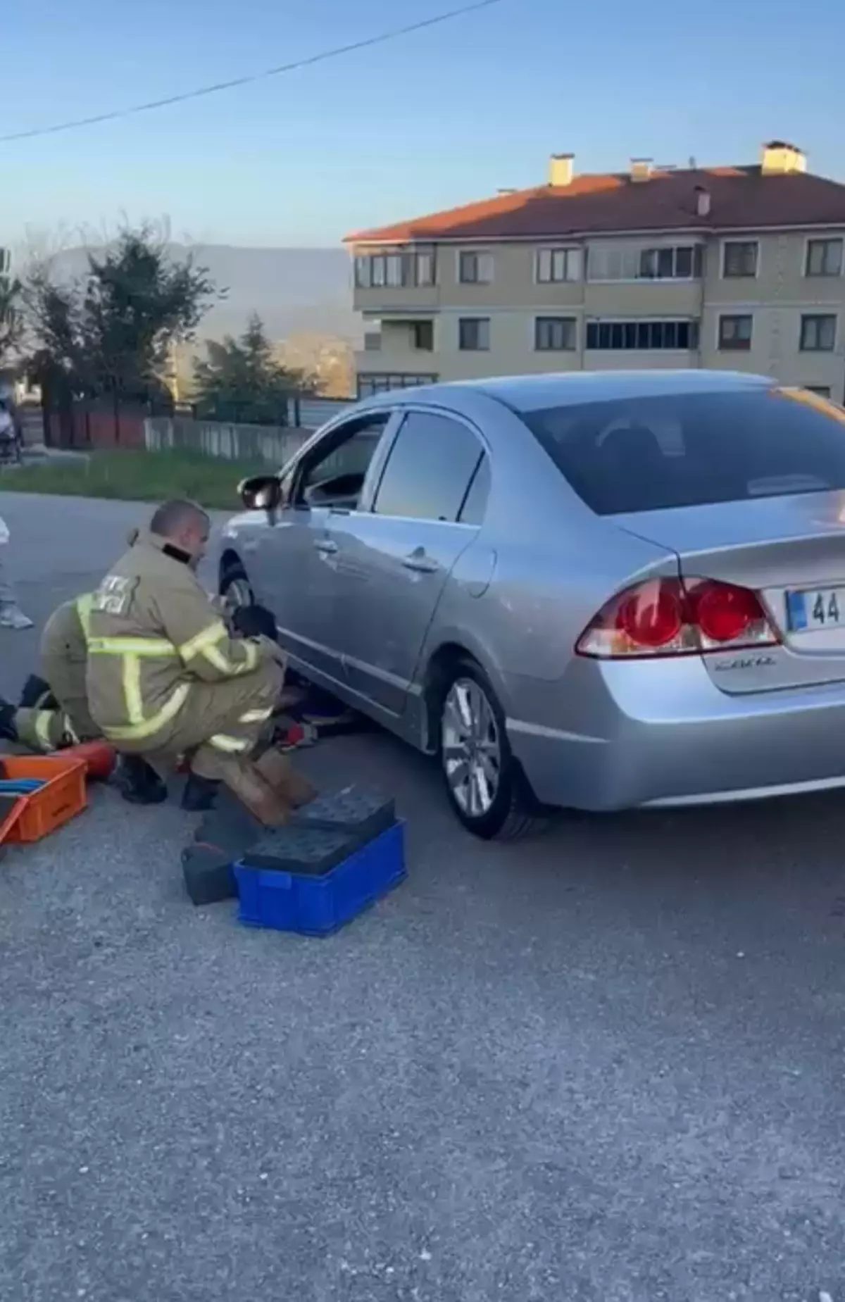 BARTIN’da otomobilin çarptığı yaralı köpek, girdiği park halindeki başka bir otomobilin altında sıkıştı. İtfaiye ekipleri tarafından çıkarılan köpek, tedaviye alındı.