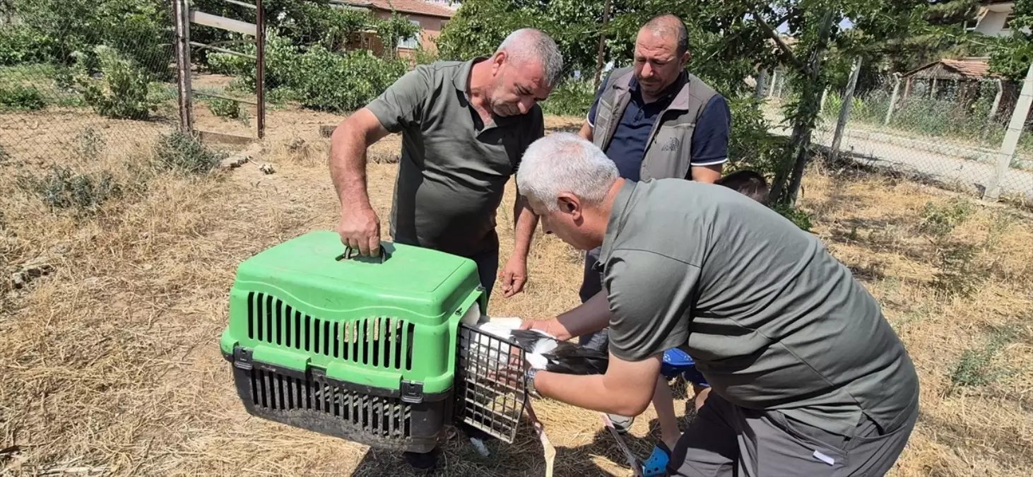 Yaralı leylek, vatandaşların ihbarı üzerine bölgeye çağrılan Doğa Koruma ve Milli Parklar (DKMP) Kırıkkale Şube Müdürlüğü ekiplerine teslim edildi.