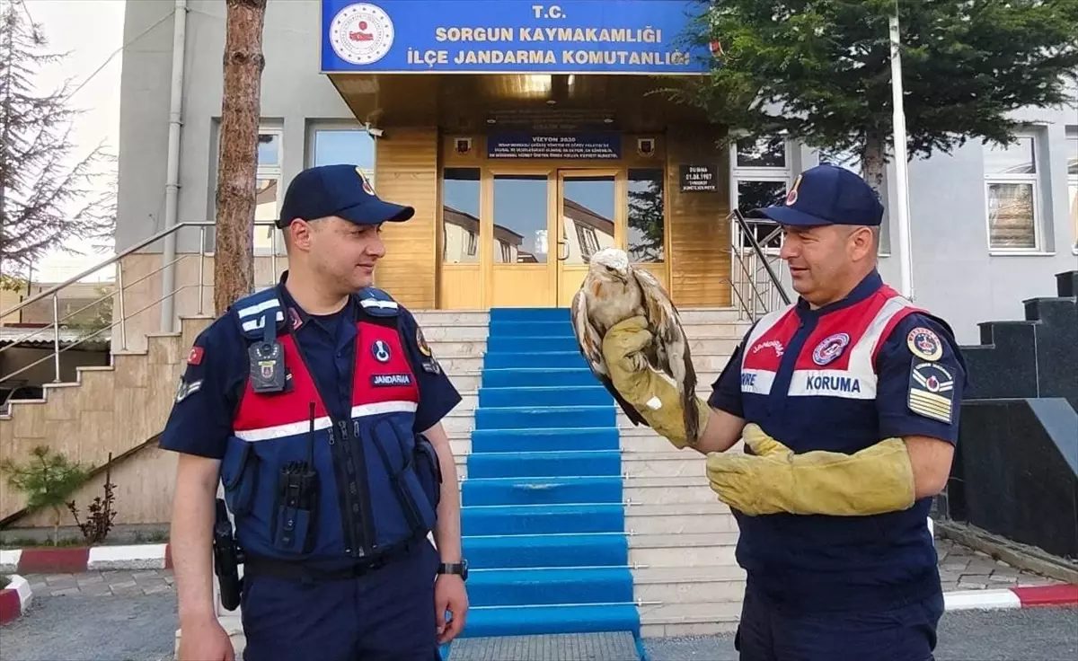 Yozgat'ın Sorgun ilçesinde yaralı bulunan şahin, ekiplere teslim edilerek tedavi edilecek.