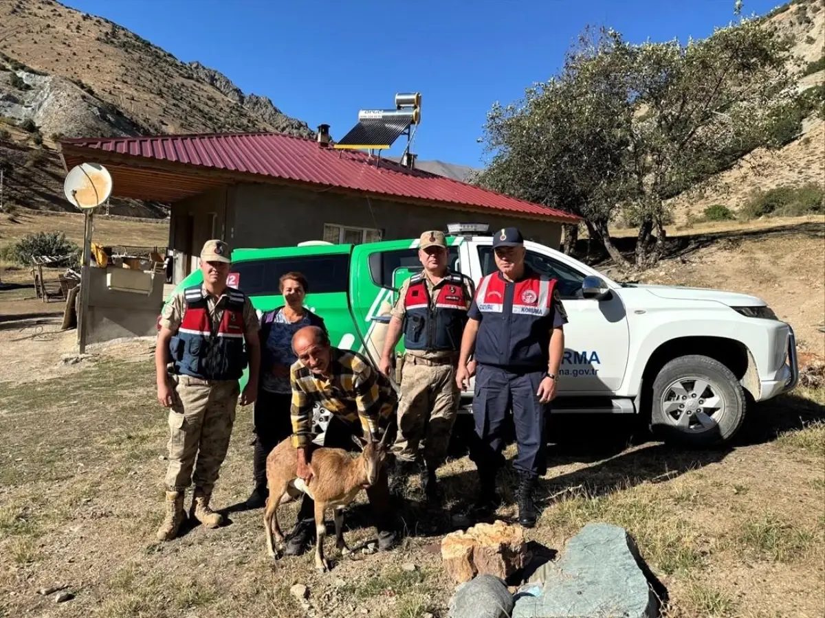 Erzincan'da yaralı yaban keçisi jandarma ekiplerince DKMP'ye teslim edildi ve tedavi edilecek.