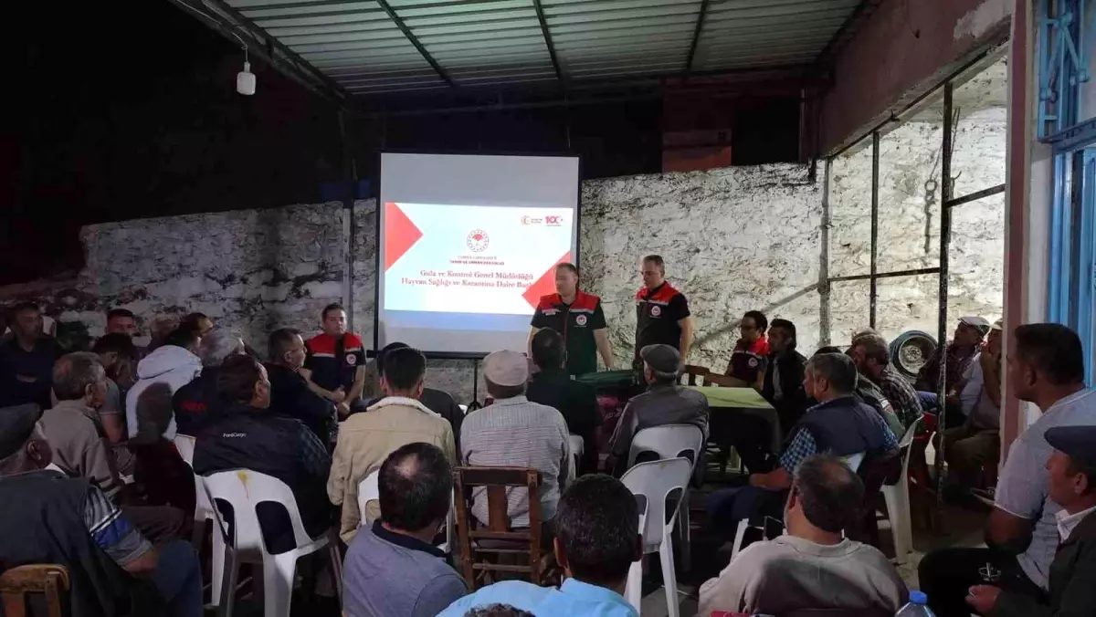 Çavdar Mahallesi’nde, Tarım ve Orman İl Müdür Yardımcısı Hamit Eray Yeşilçayır ve Hayvan Sağlığı ve Yetiştiriciliği Şube Müdürü Ahmet Gezman’ın katılımıyla brusella hastalığı hakkında bilgilendirme toplantısı yapıldı. Toplantıda, hastalığın bulaşma yolları, belirtileri ve ekonomik zararları ile hastalıktan korunma yöntemleri üzerine detaylı bilgiler verilirken, konjuktival aşılamanın önemi vurgulandı. Aydın İl Tarım ve Orman Müdürlüğü yetkilileri 2024 yılı itibarıyla Aydın genelinde 3 aylıktan büyük yaklaşık 70 bin dişi buzağının brusella hastalığına karşı aşılandığını ve aşılama çalışmalarının yıl boyunca devam edeceğini açıkladı. – AYDIN