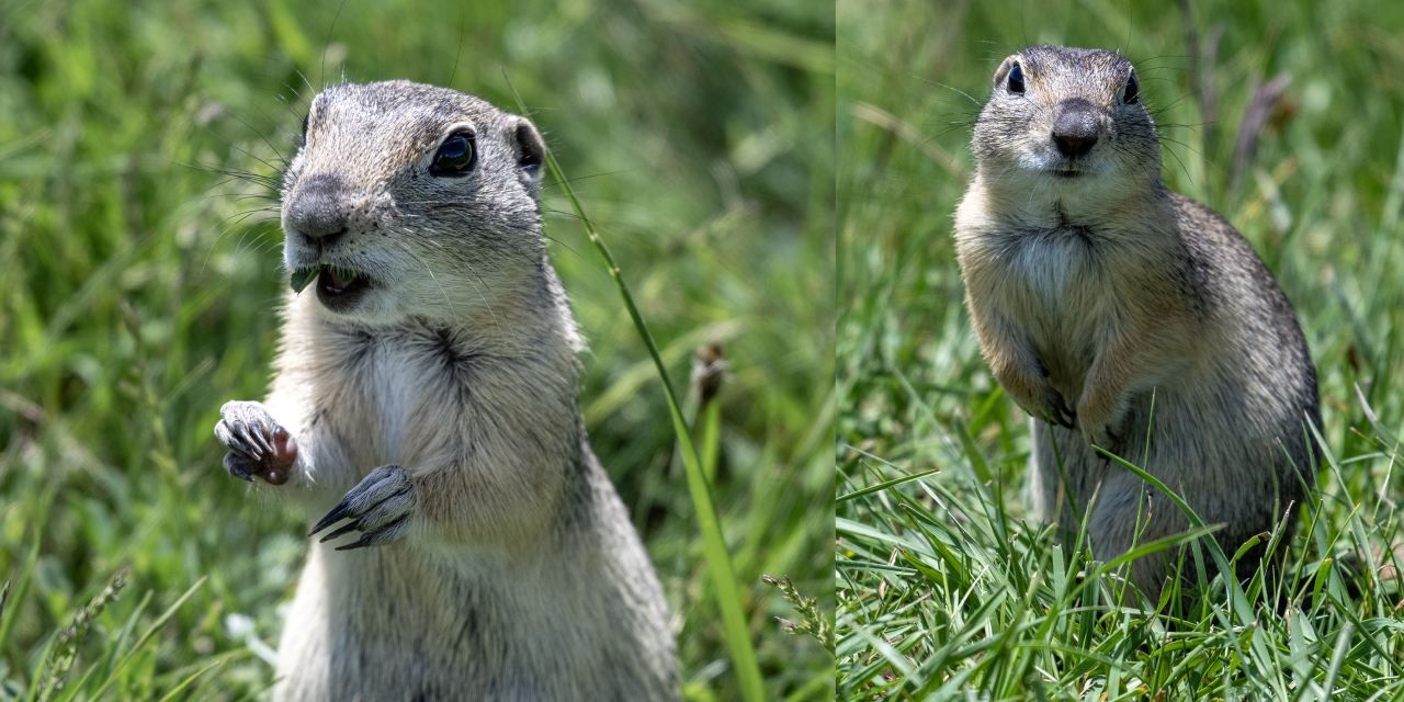 Kars’ın Susuz ilçesinde, halk arasında “Anadolu gelengisi” olarak bilinen Anadolu yer sincapları, çayırlık alanlarda yiyecek ararken ve beslenirken görüntülendi.