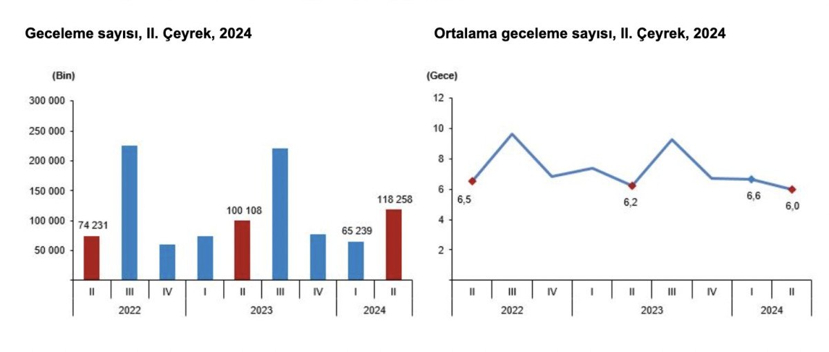 Bu çeyrekte seyahate çıkanlar 118 milyon 258 bin geceleme yaptı.