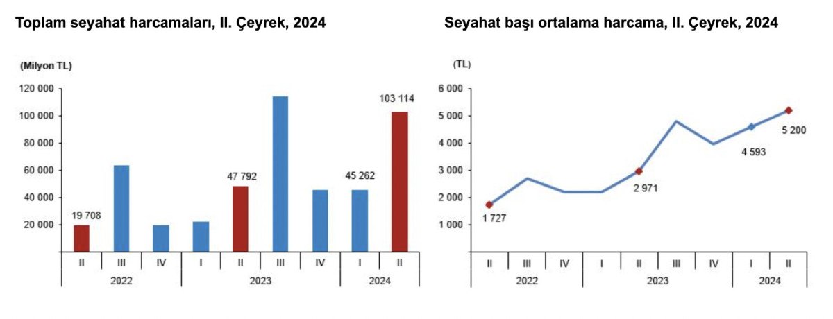 SEYAHATE ÇIKANLAR, 103 MİLYAR 114 MİLYON 141 BİN TL HARCADI