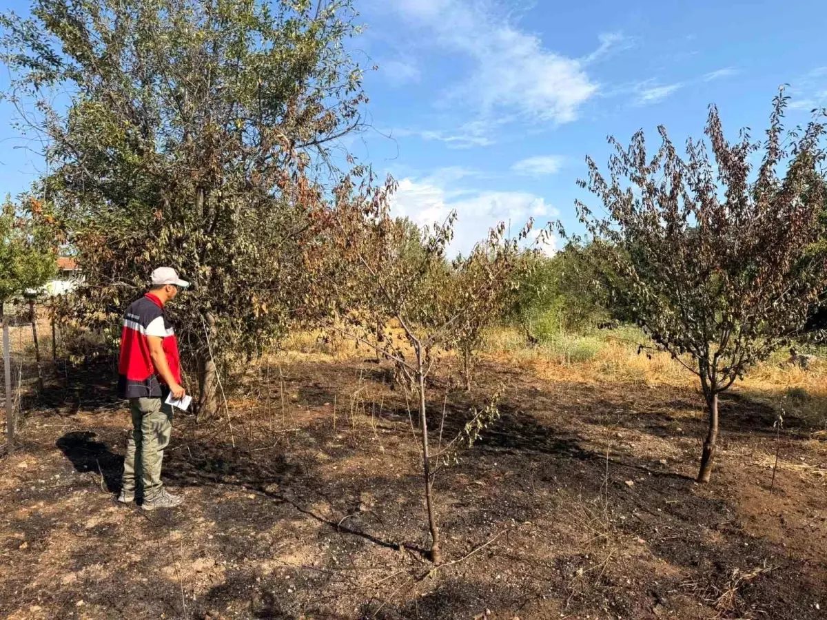 Kütahya’nın Şaphane ilçesinde meyve bahçesine yıldırım düşmesiyle çıkan yangının hasar tespit çalışması yapıldığı bildirildi.