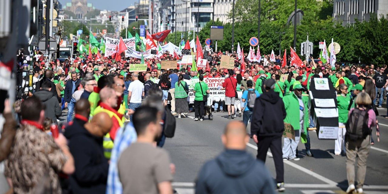 Brüksel’de hükümeti protesto etmek için binlerce kişi Kuzey Tren İstasyonu önünde bir araya geldi. Sloganlar atan göstericiler, birkaç kilometre mesafedeki Mont des Arts Meydanı’na kadar yürüdü.