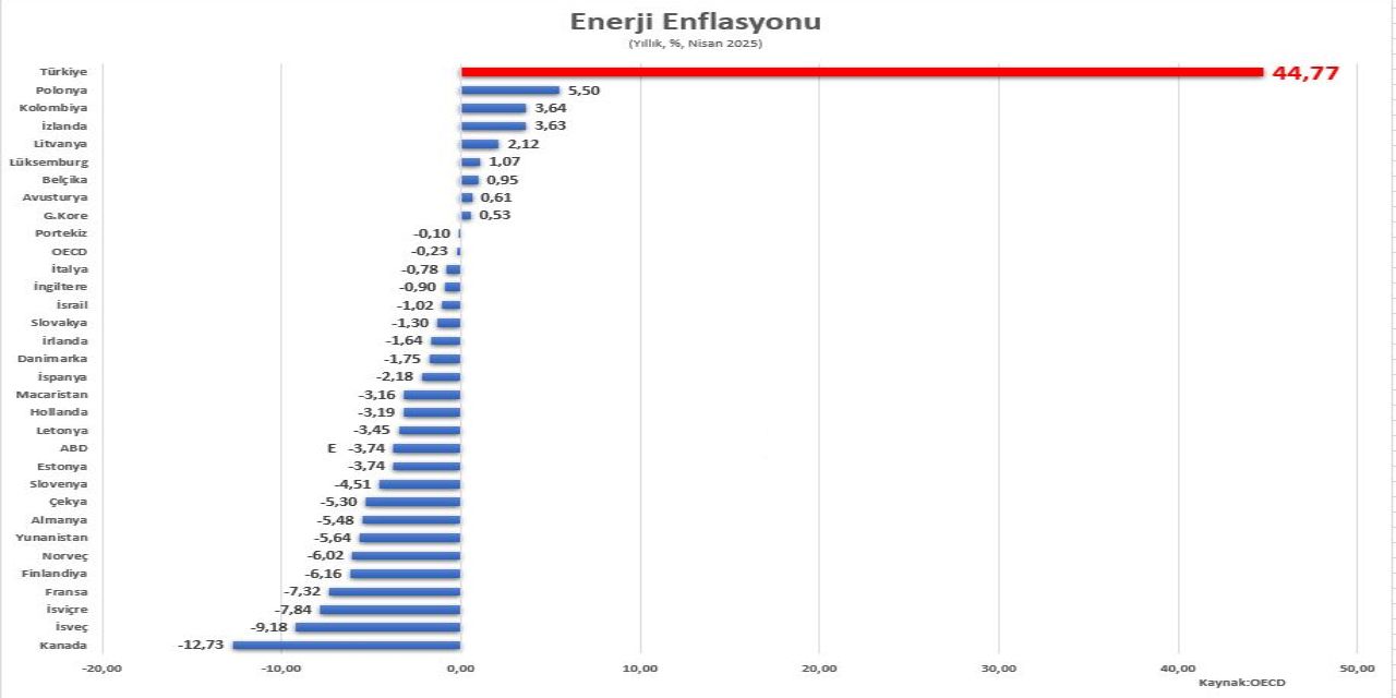 OECD ülkelerinde ortalama yıllık enerji enflasyonu yüzde eksi 0,23 olurken Türkiye Nisan’a yıllık artışta çift haneleri gören tek ülke oldu.