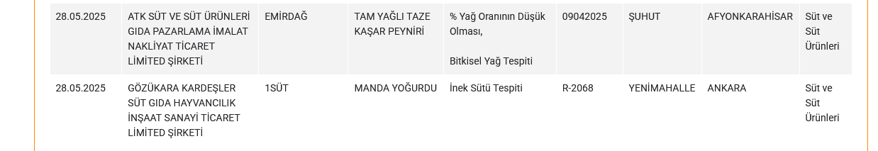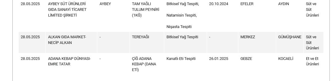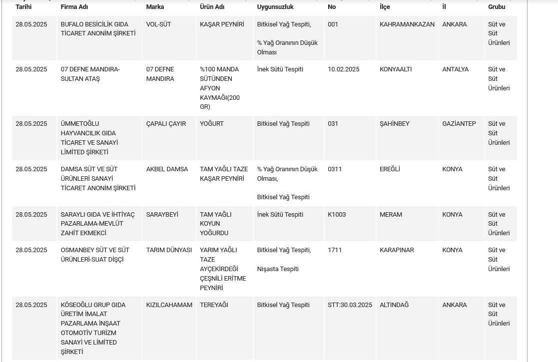 Taklit veya Tağşiş Yapılan Gıdalar listesinde de pek çok peynir ve tereyağı yer aldı. Bakanlığın açıkladığına göre o ürünler ve tespit edilen usulsüzlükler şöyle: