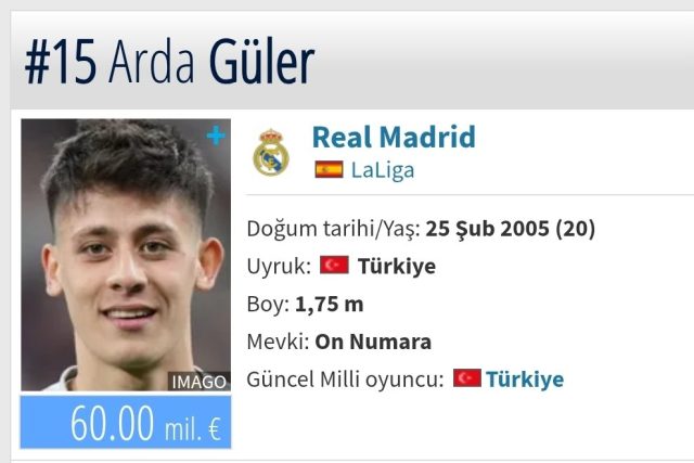 Genç yıldızın piyasa değeri kısa sürede 45 milyon eurodan 60 milyon euroya yükseldi. Bu artış, Arda’nın hem İspanya’da hem de Avrupa’da gösterdiği gelişimin bir yansıması olarak değerlendiriliyor.