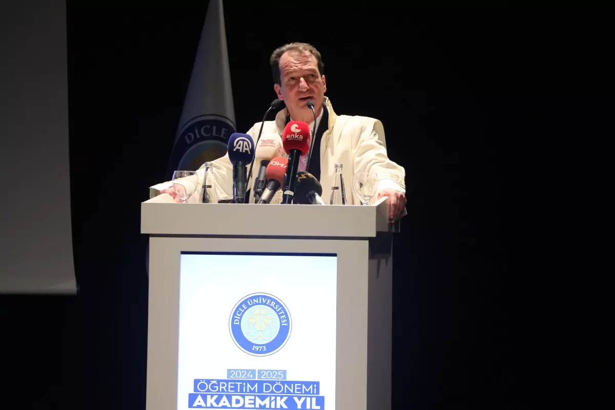 YÖK Başkanı Prof. Dr. Erol Özvar ise burada yaptığı konuşmada, depremzedeler ve 34 yaş üstü kadınlar için genel kontenjanlar dışında fazladan kontenjan tahsis edildiğini belirterek, “Dicle Üniversitemiz bugün çok sayıda birimde öğrenim gören 40 bine yakın öğrencisi, 1700’ü aşan öğretim elemanı ve yine yaklaşık 4 bin 500 idari personeliyle her anlamda çok büyük kapasiteye sahip üniversitelerimizden biri durumundadır. Bu büyük kapasitenin en iyi şekilde değerlendirilmesi, ülkemize, bölgemize ve şehrimize çok ciddi bir katma değer üretilmesi fevkalade önemlidir. Mevcut durumda her yıl 1 milyonu aşan üniversite kontenjanıyla yeni öğrencilerimiz için yükseköğrenim imkanı sunuyoruz. Ayrıca şehit-gazi yakınları, depremzedeler ve 34 yaş üstü kadınlar için genel kontenjanlar dışında fazladan kontenjan tahsis ediyor, engelli vatandaşlarımız için üniversite hayatını kolaylaştırıcı önemli tedbirleri hayata geçiriyoruz. Kurumsal akreditasyonların yanında üniversitelerimizde program akreditasyonlarını güçlü bir şekilde teşvik ediyor ve destekliyoruz. Bu anlayışımızın bir tezahürü olarak, doktora programı açmak üzere başvuran üniversitelerimize akredite programa sahip olma şartı getirmiş bulunuyoruz. Benzer şekilde, önümüzdeki dönemde fakülte, yüksekokul, enstitü, araştırma ve uygulama merkezi gibi birimlerin kurulmasını da akreditasyon şartına bağlamak üzere kurulumuzca bir çalışma yürütülmektedir” diye konuştu.