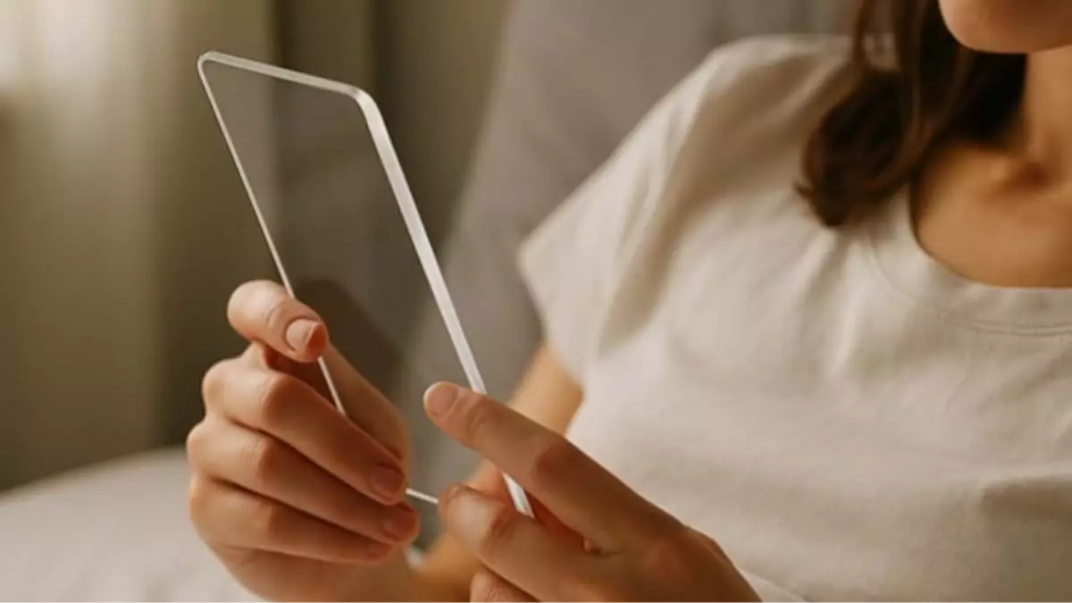 Videoda, Chipotle restoranında sırada bekleyen bir kadının başparmağını şeffaf bir cam tabakta gezdirdiği görülüyor. Başı öne eğik, gözleri telefon ekranının olması gereken yere dikilmiş. Cihaz tamamen şeffaftı ve geleneksel bir akıllı telefonla aynı boyut ve şekle sahipti.