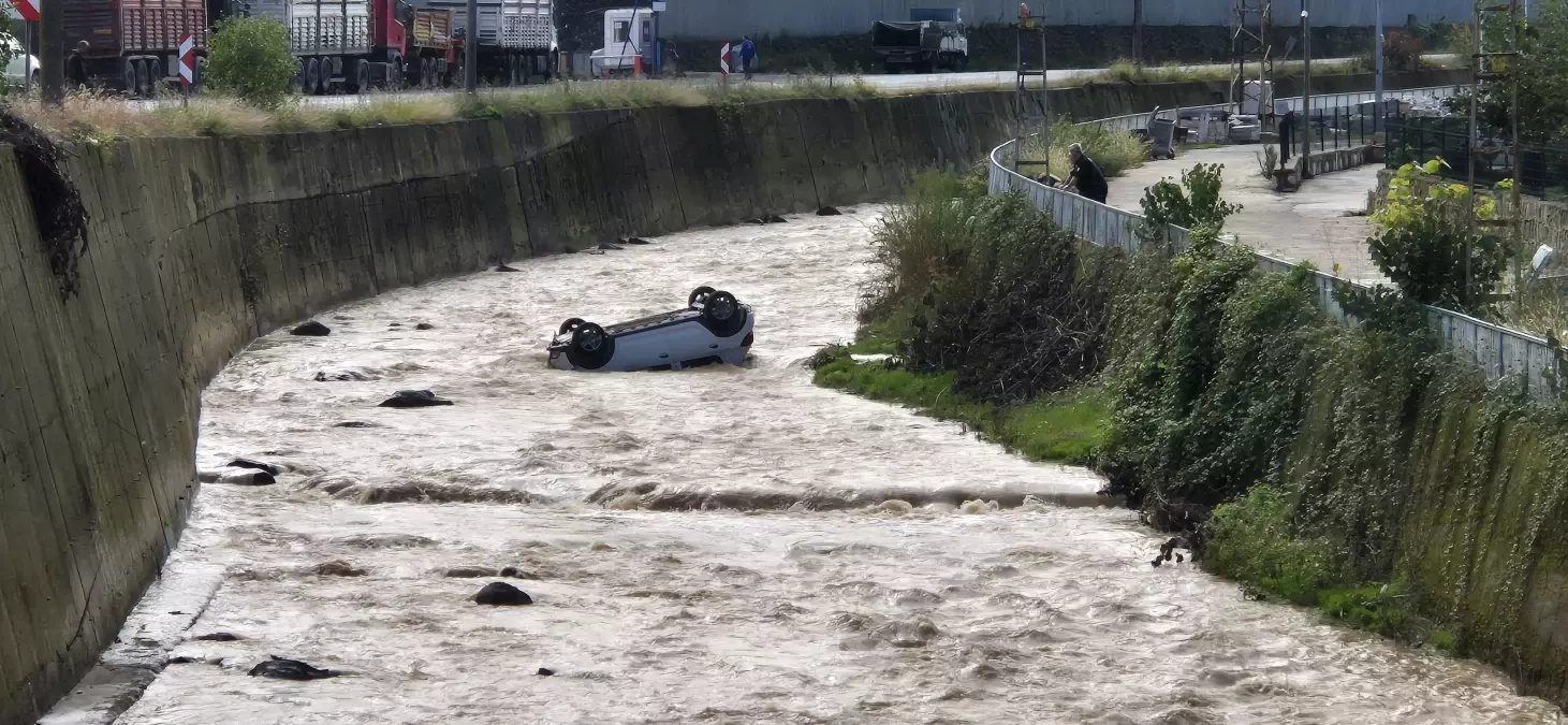 Öte yandan kaza, çevredeki bir iş yerinin güvenlik kamerasına yansıdı. Görüntüde, yoldan çıkan otomobilin dereye ön kısmı üzerinden düştüğü, çevredeki bir kişinin dereye atlayarak yardım etmeye çalıştığı anlar yer aldı.
