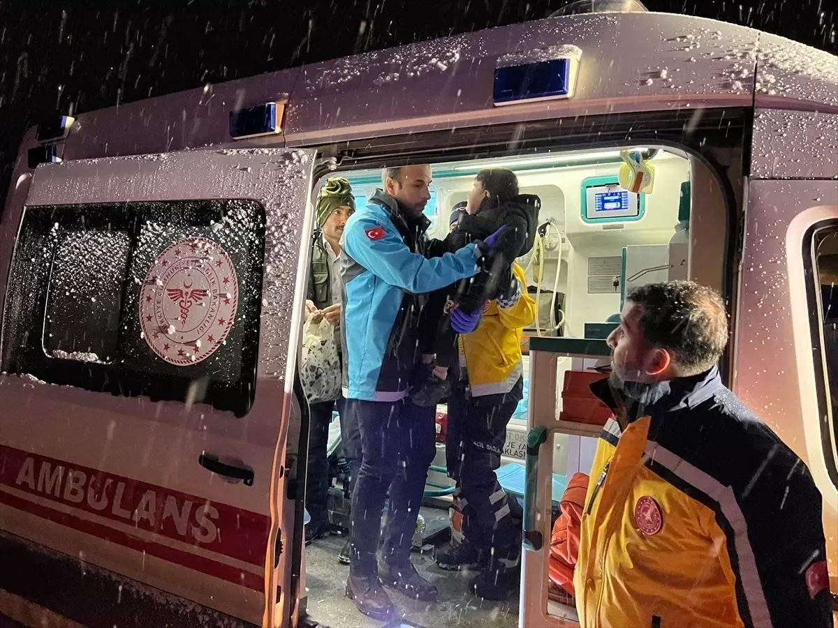 3 yaşındaki çocuk, kardan kapanan yolda fenalaşarak hastaneye yetiştirildi.