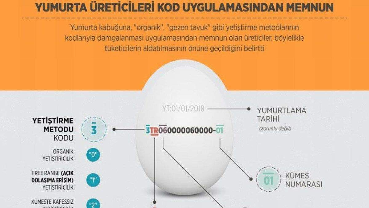 Yetiştirme metodu kodu “0” ise bunun organik yetiştiriciliği, yani organik yemlerle beslenen, açık havaya da erişimi olan ve sertifikalandırılmış işletmelerden elde edilen yumurtayı, “1” ise açık dolaşıma erişim, yani açık havaya da erişimi olan bir kümeste yetişen ve serbest dolaşabilen tavuklardan elde edilen yumurtayı, “2” ise kümeste kafessiz yetiştiricilik, yani kapalı bir kümes içinde serbest dolaşabilen tavuklardan elde edilen yumurtayı, “3” ise kafesli yetiştiricilik, yani kümeslerde kafeste yaşayan tavuklardan elde edilen yumurtayı ifade ettiği bilgisi verilen açıklamada, şunlar kaydedildi: