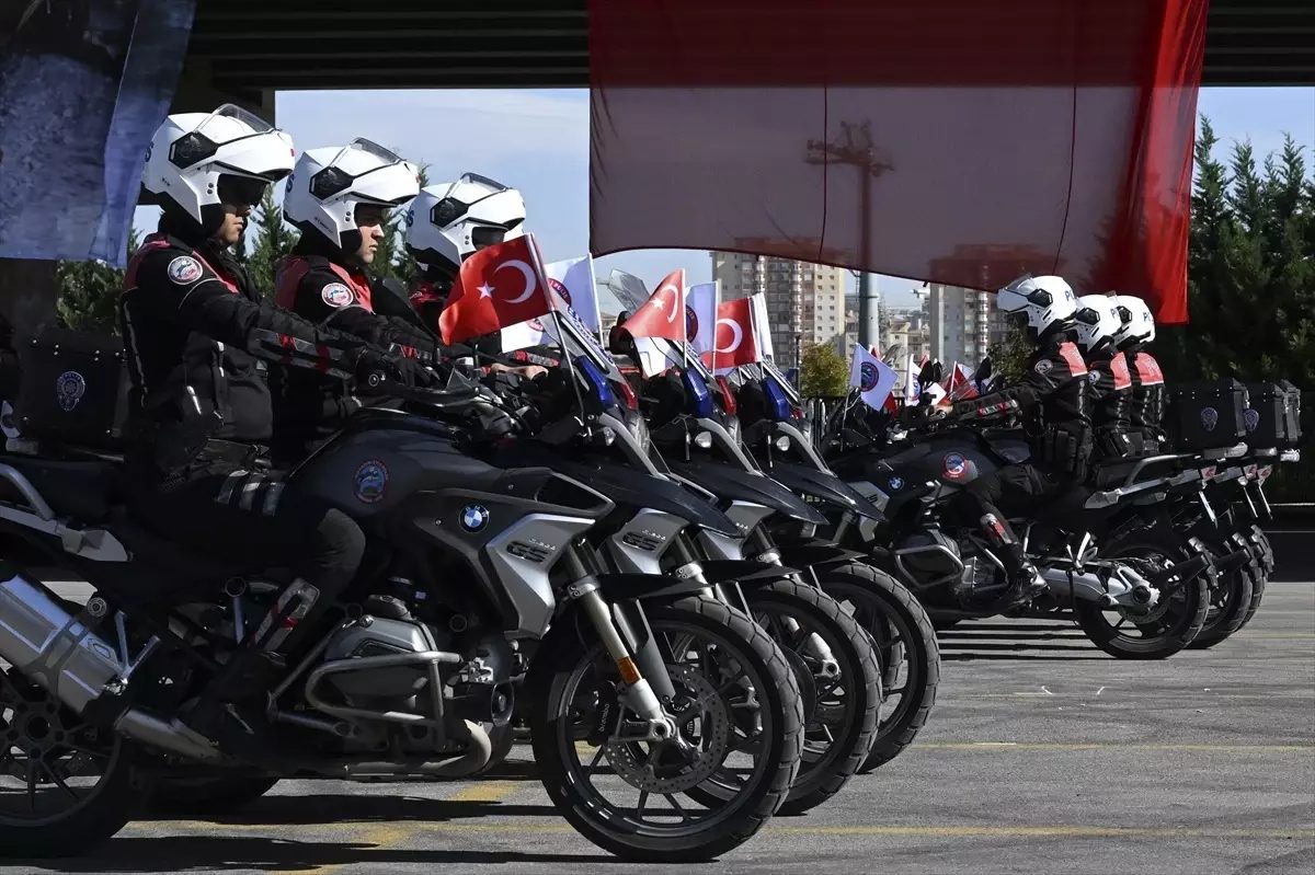 Ankara Emniyet Müdürlüğü Asayiş Şube Müdürlüğüne bağlı Motosikletli Polis Timler Amirliğinde temel eğitim kursu alan 7’si kadın 85 yunus polisi için mezuniyet töreni düzenlendi.