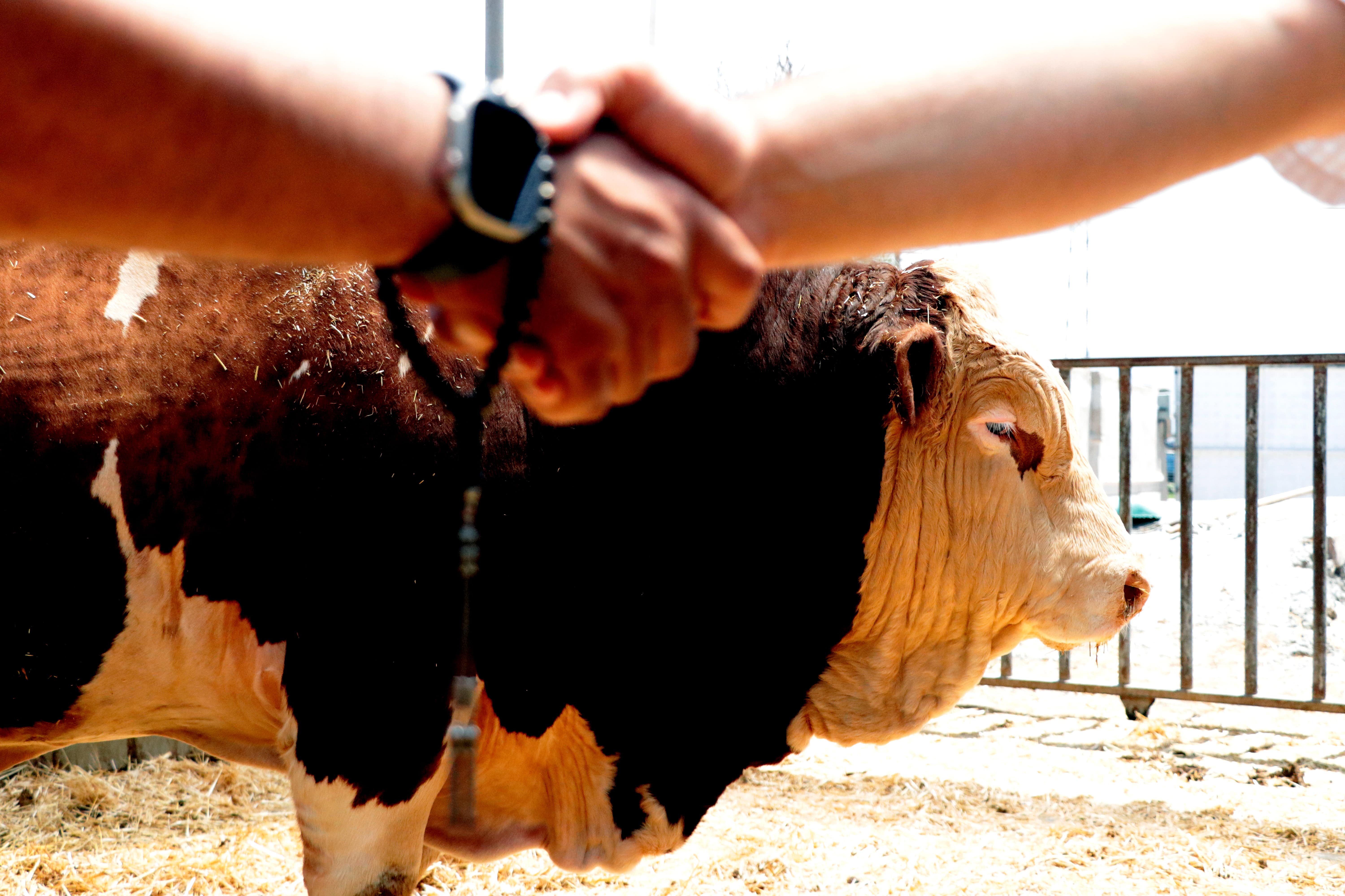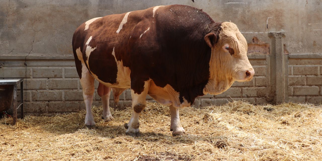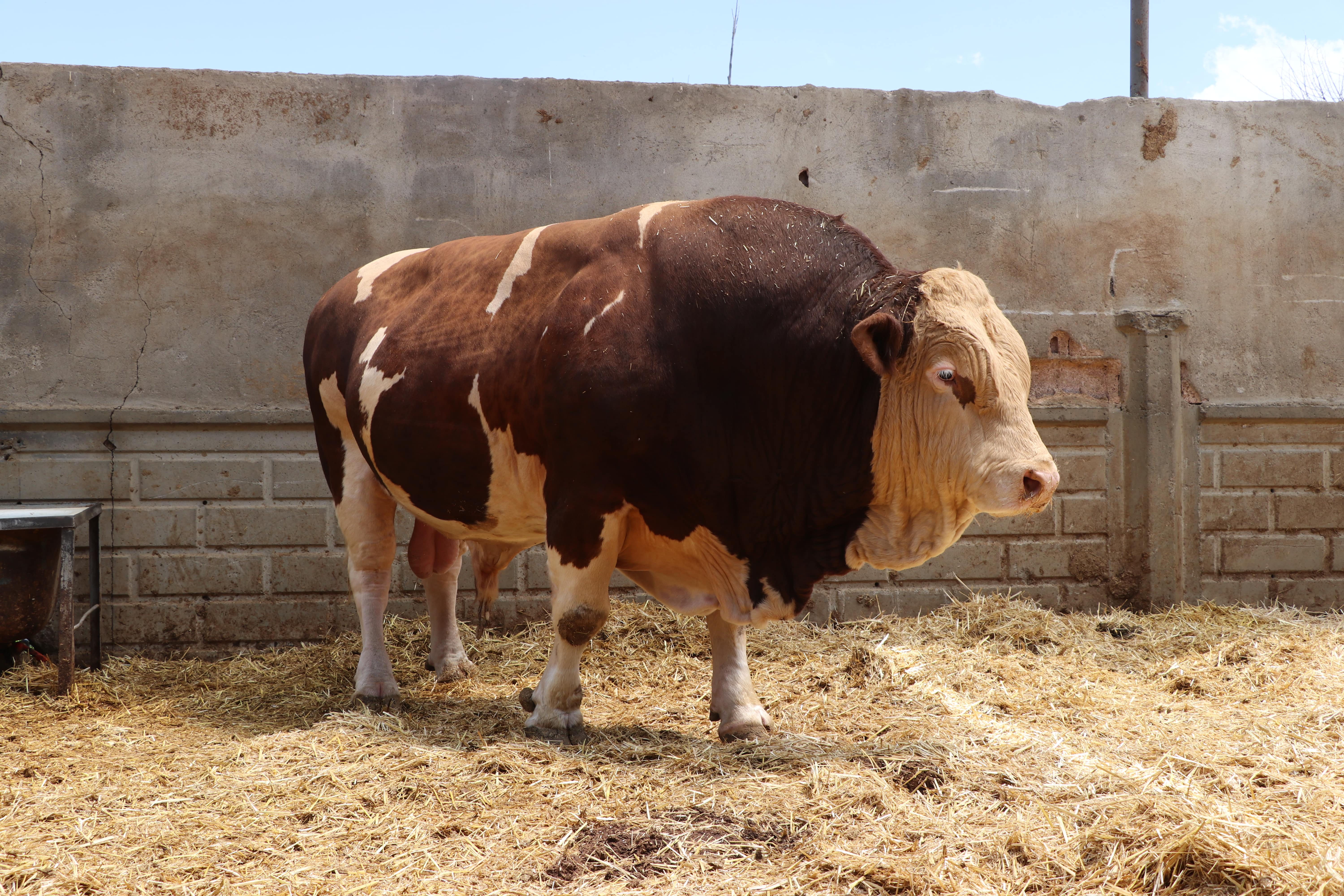 Kurban Bayramı öncesi satışa çıkarılan Simmental Fleckvieh ırkı 4 yaşındaki boğa, sosyal medyada ve haberlerde ilgi gördü.