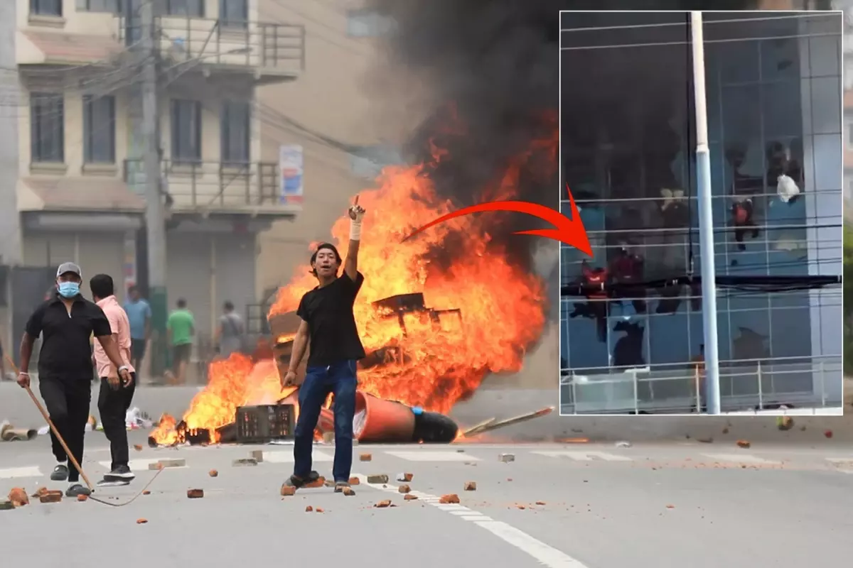 Nepal'in başkenti Katmandu'da sosyal medya platformlarına erişimin engellenmesiyle başlayan protestolar tırmanarak devam ediyor. Son olarak göstericiler hükümet yanlısı televizyon binası ateşe verirken çalışanlar camdan atlayarak kurtuldu.