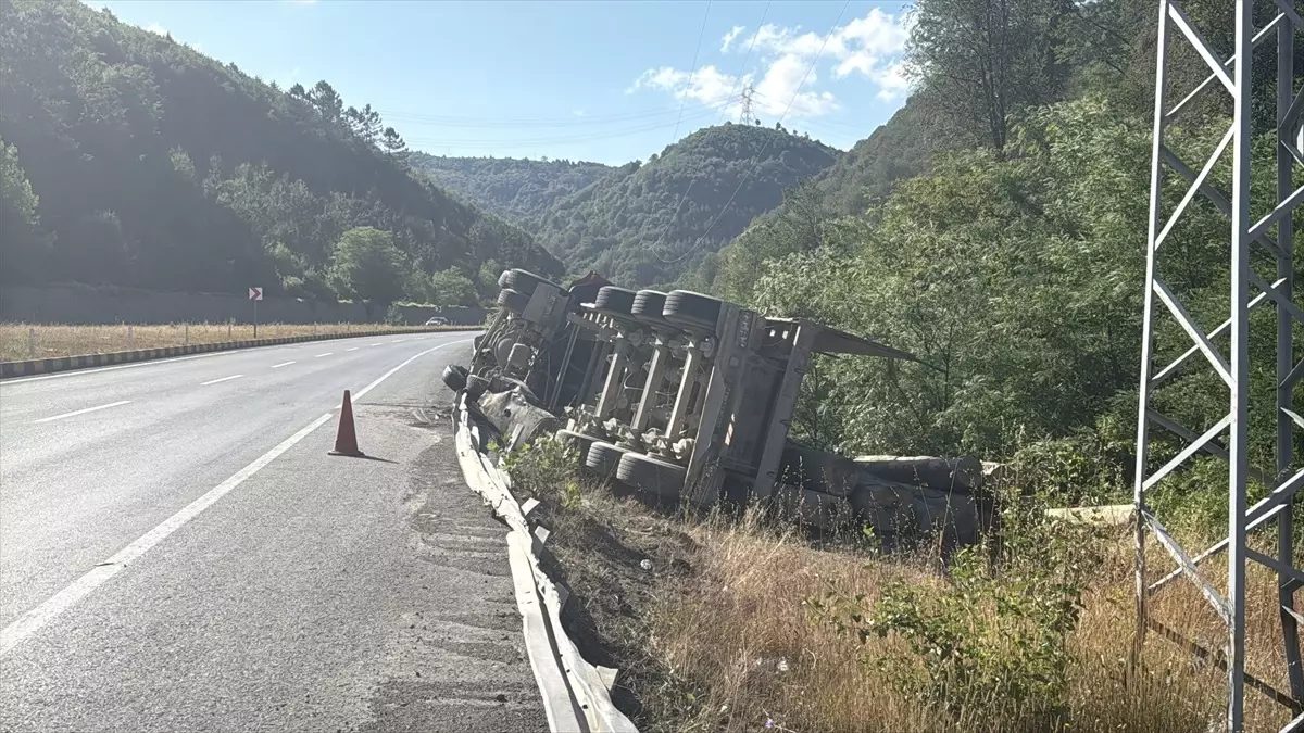 S.D’nin kullandığı 41 NP 433 plakalı tomruk yüklü tır, Zonguldak- Ankara kara yolu Sapça mevkisinde devrildi.